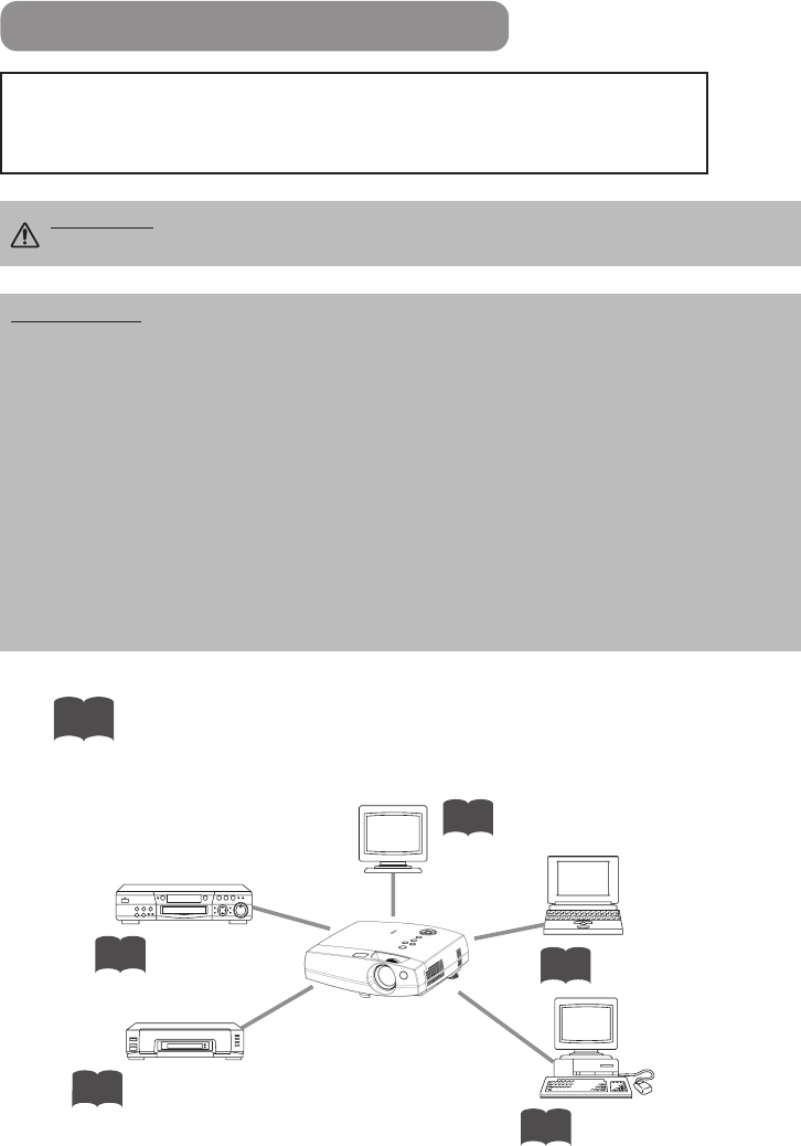 • TURN OFF ALL DEVICES prior to connecting them to the projector. Attempting to